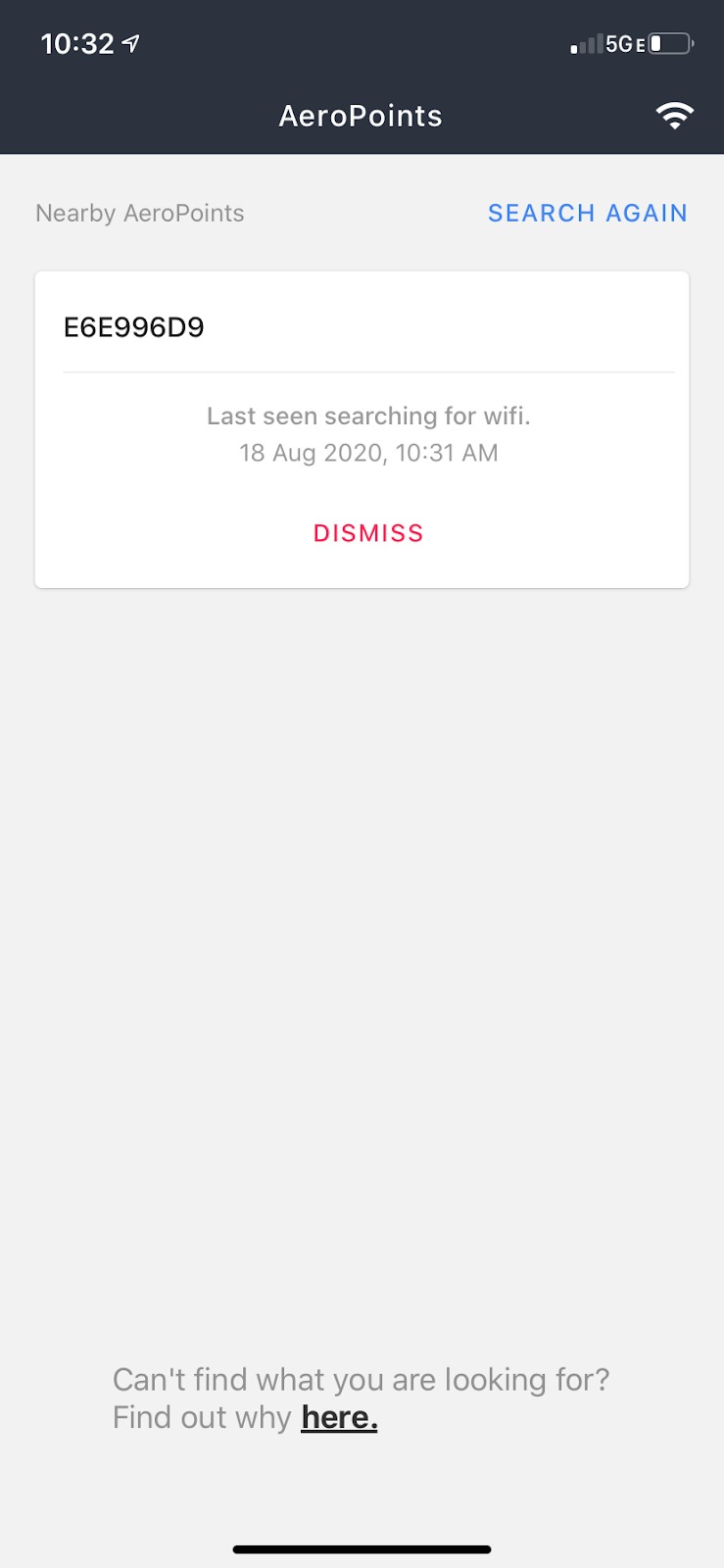 If you need to troubleshoot your hotspot, we recommend first using the default AeroPoints hotspot (instead of a custom hotspot).