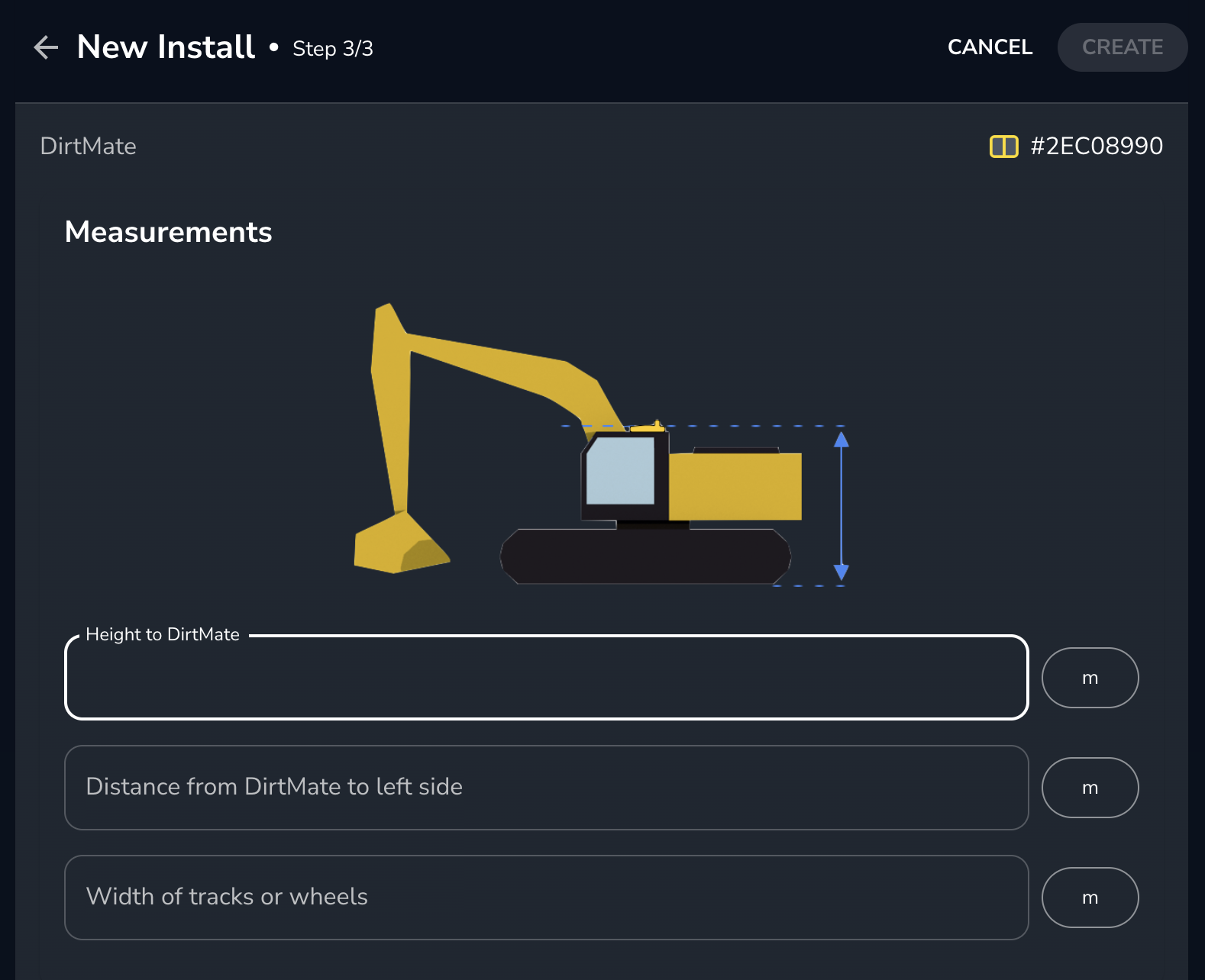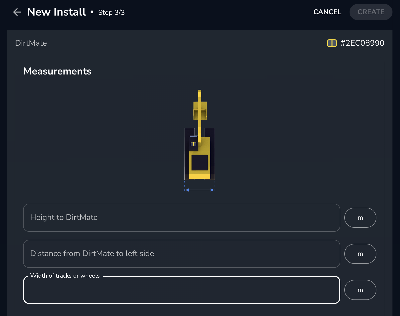 You will now need to perform some measurements to ensure accurate installation. First, measure the height of the DirtMate installation and input the measurement into the field.