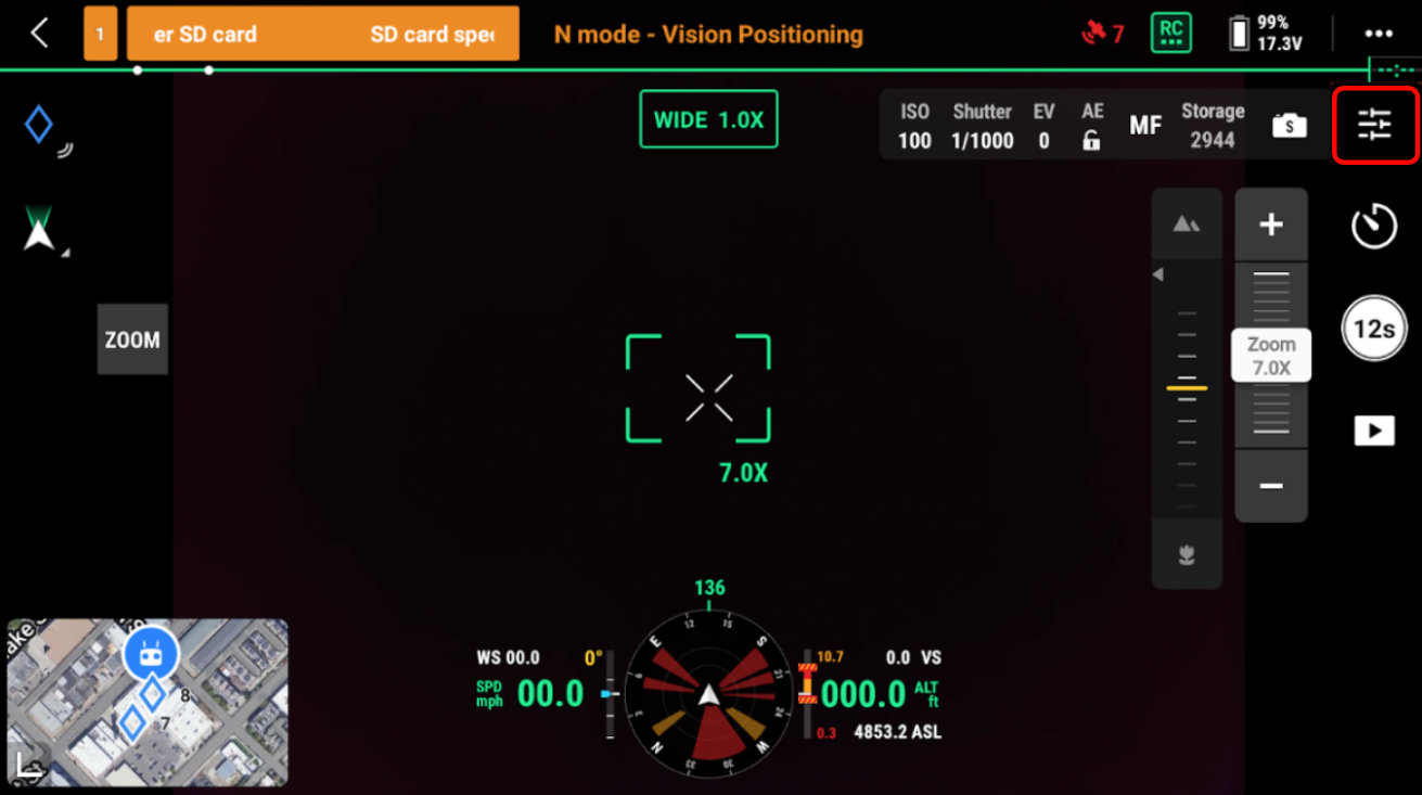 For optimal performance, your SD card should be formatted regularly. To get in the habit, we recommend formatting it before the first flight of the day.