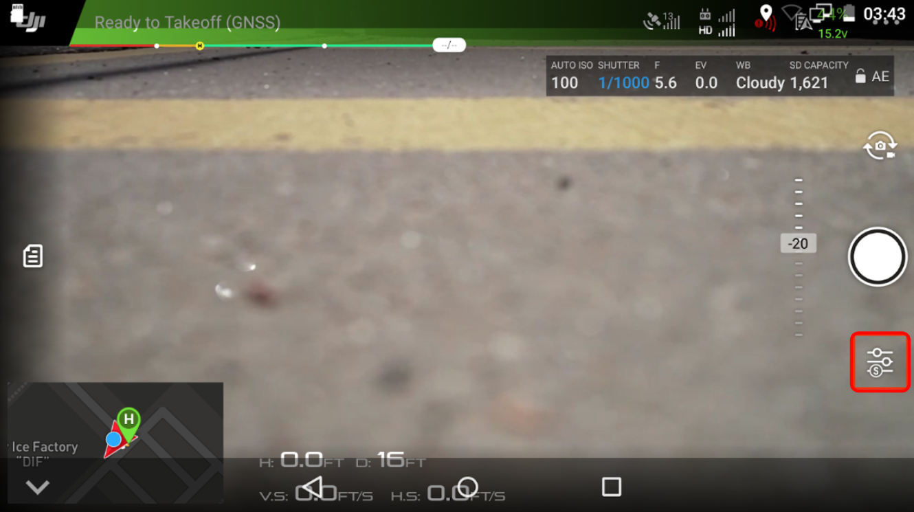 3. From the camera view screen, tap the Slider Bar icon on the right side of the screen.