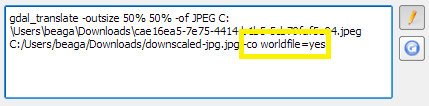 9. At the end of the existing script, type" -co worldfile=yes" and click OK. You'll be notified by a pop-up window once the process is complete.