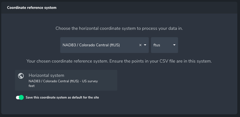 If the site does not already have a default system set, you can set it by turning on Save this coordinate system as default.