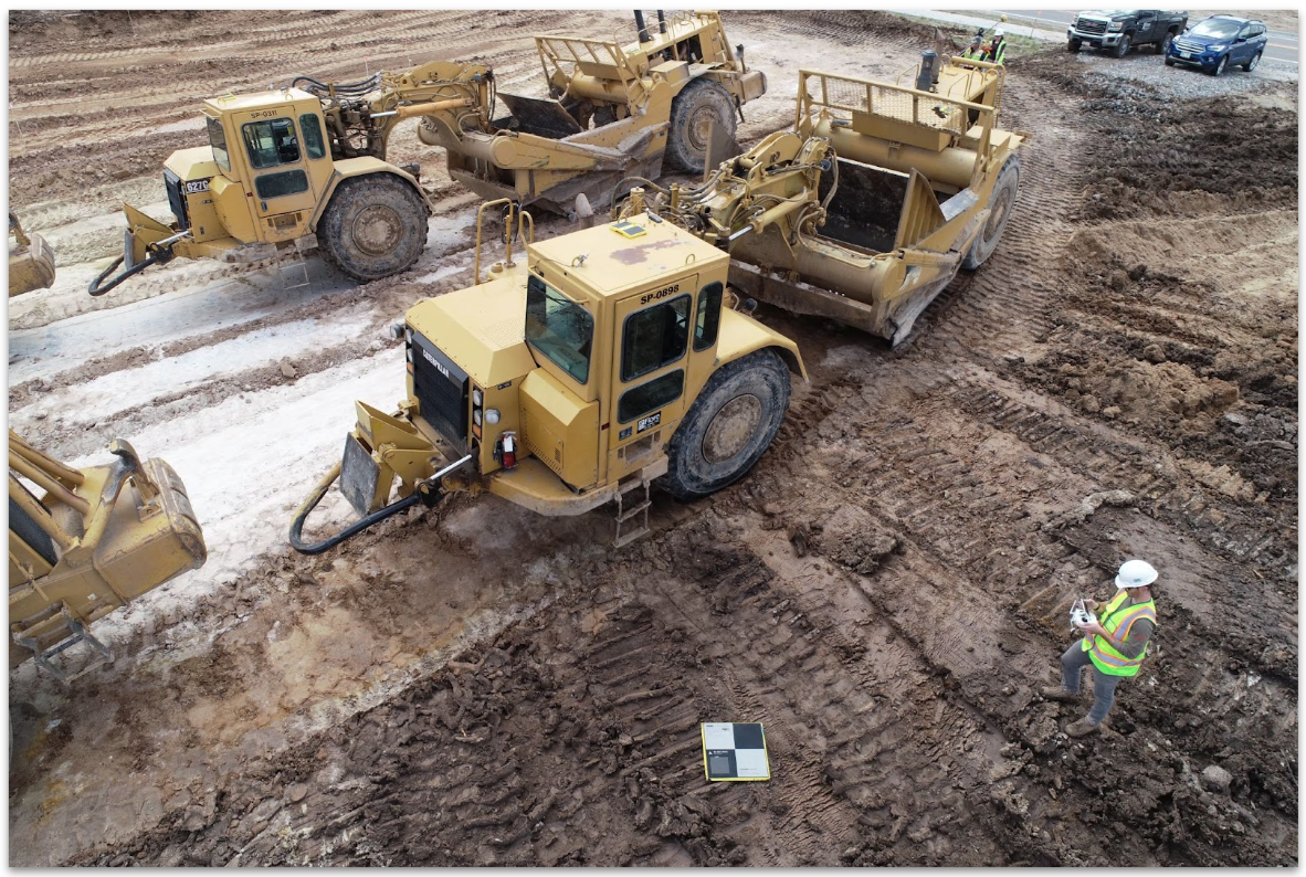 Flying a drone frequently on a site that employs DirtMate is recommended to provide an accurate baseline for DirtMate data. Installing DirtMates on all machines on site is the best practice. However, that may not be feasible for some sites, such as those that are importing material. A drone flight will ensure that any work performed by machines that do not have DirtMate installed is still reported.