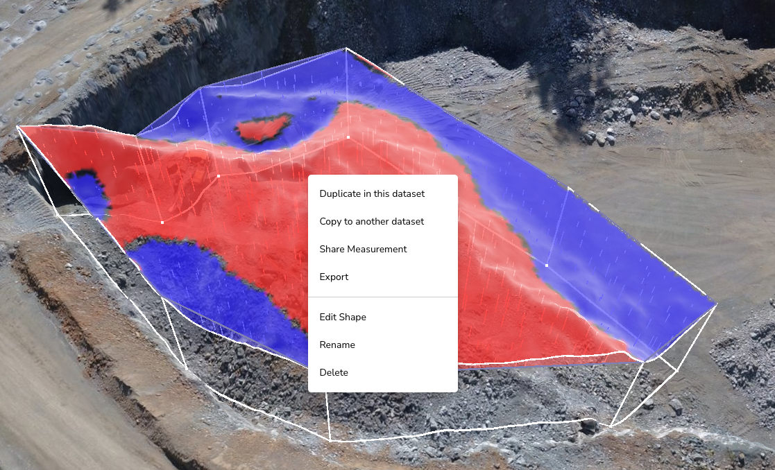 The Custom Base Volume type allows for precise adjustment of the individual vertex points, making up the outline of a volume measurement. Adjusting the position and elevation of the vertices allows the measurement base to reflect the material in the stockpile accurately.