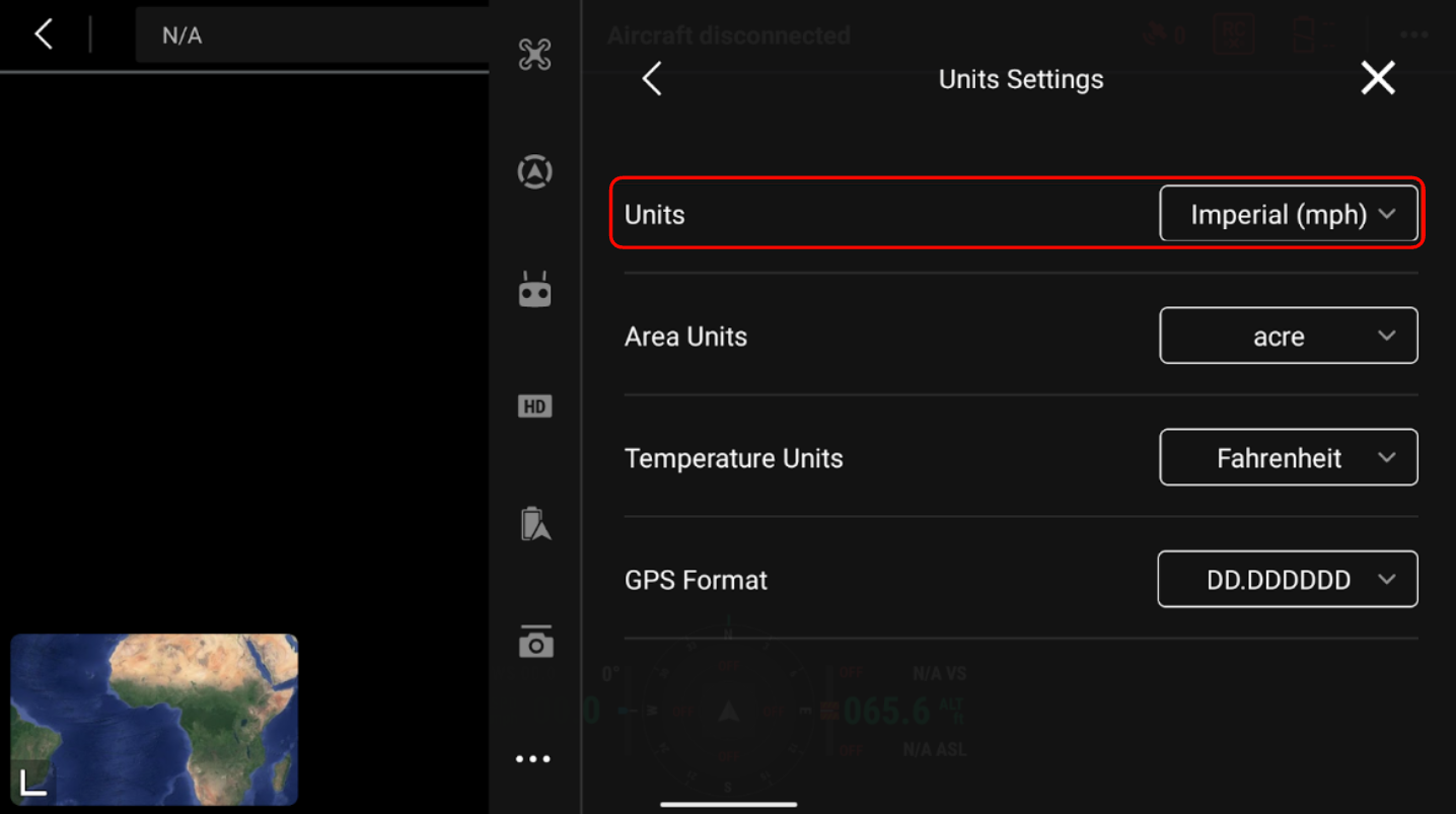 This is the altitude of the aircraft during the operation, which you set during mission planning. In DJI Pilot 2, you can choose if you want your flight settings in feet or meters.