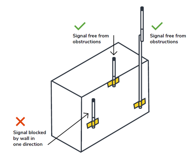 Antennas: The WiFi antennas are clearly above the roof of the building, and are not obstructed by the mast they’re supported by. The omni-directional 4G antennas included at the top of the Network Gateway (not visible in the picture) are also above the roof to ensure good uplink quality.