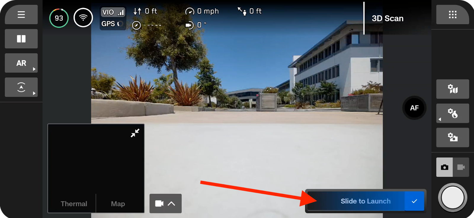 Tap "Begin Scan" then slide the toggle to launch your drone